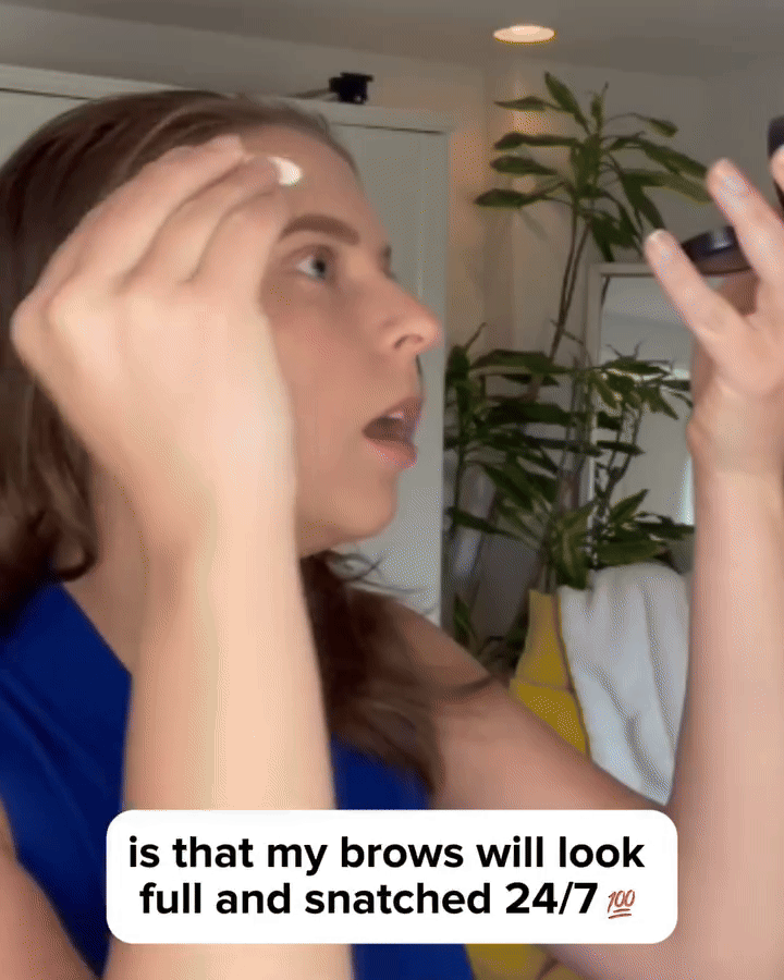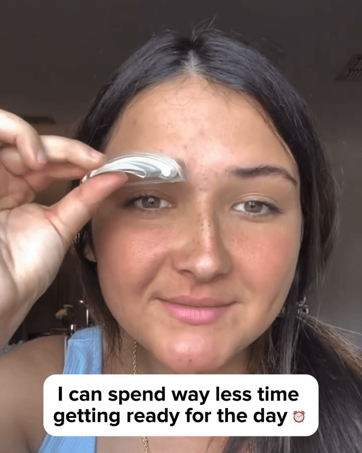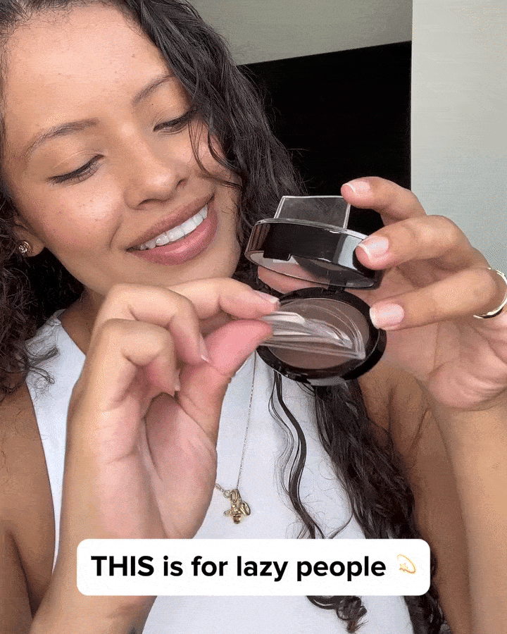 Press the stamp into the compact, align with your brow, and lift — that’s it.